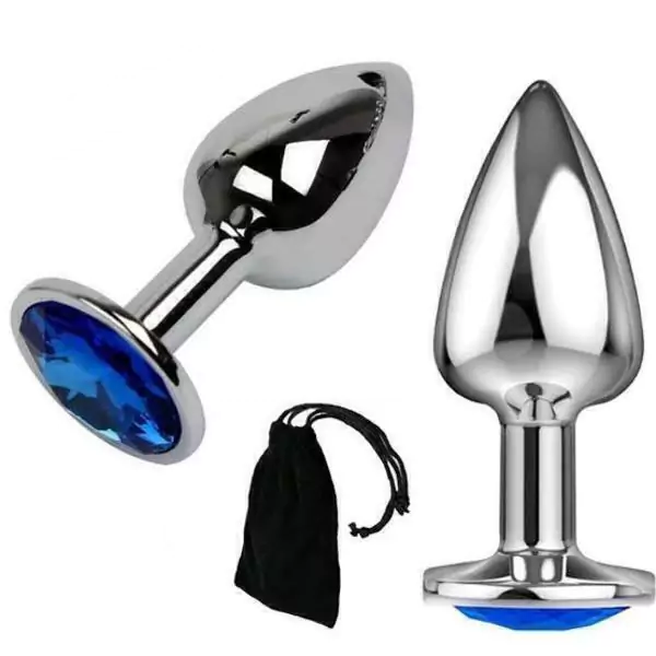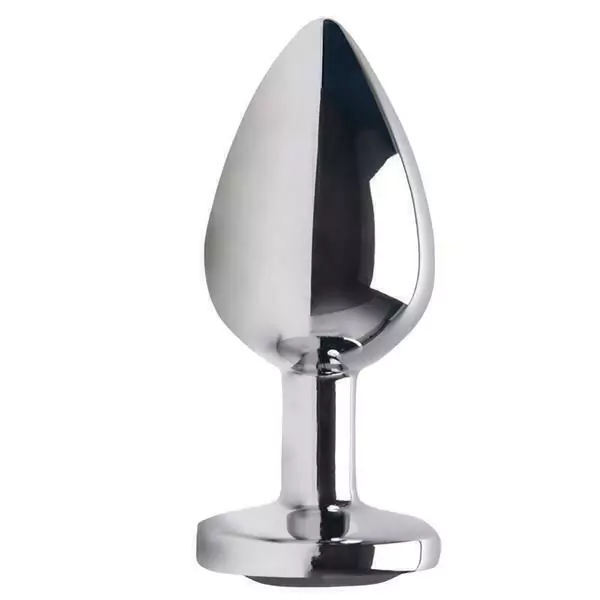 Plug anal de luxo em alumínio, com formato cônico, feito em alumínio fundido e polido a mão, possui em sua base uma pedra lapidada que lembra um diamante colorido,