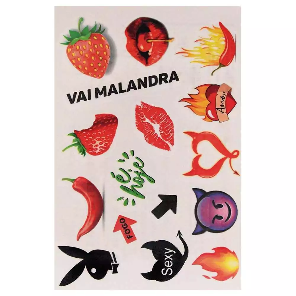 Vai Malandra, a tatuagem removível da Sedux é perfeita para esquentar seus instantes de prazer, acompanha 16 desenhos, dura entre um até dois dias, é de fácil remoção, é temporária, não é tóxica e nem alérgica!